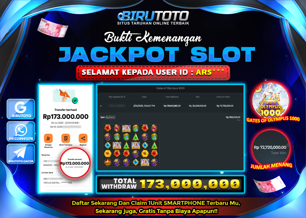 BIRUTOTO JACKPOT SLOT GATES OF OLYMPUS 1000 Rp.173.000.000 LUNAS