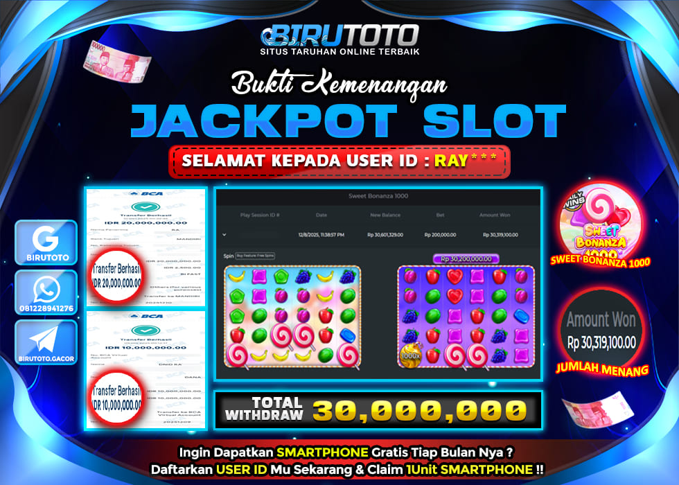 BIRUTOTO JACKPOT SLOT SWEET BONANZA 1000 Rp.30.000.000 LUNAS