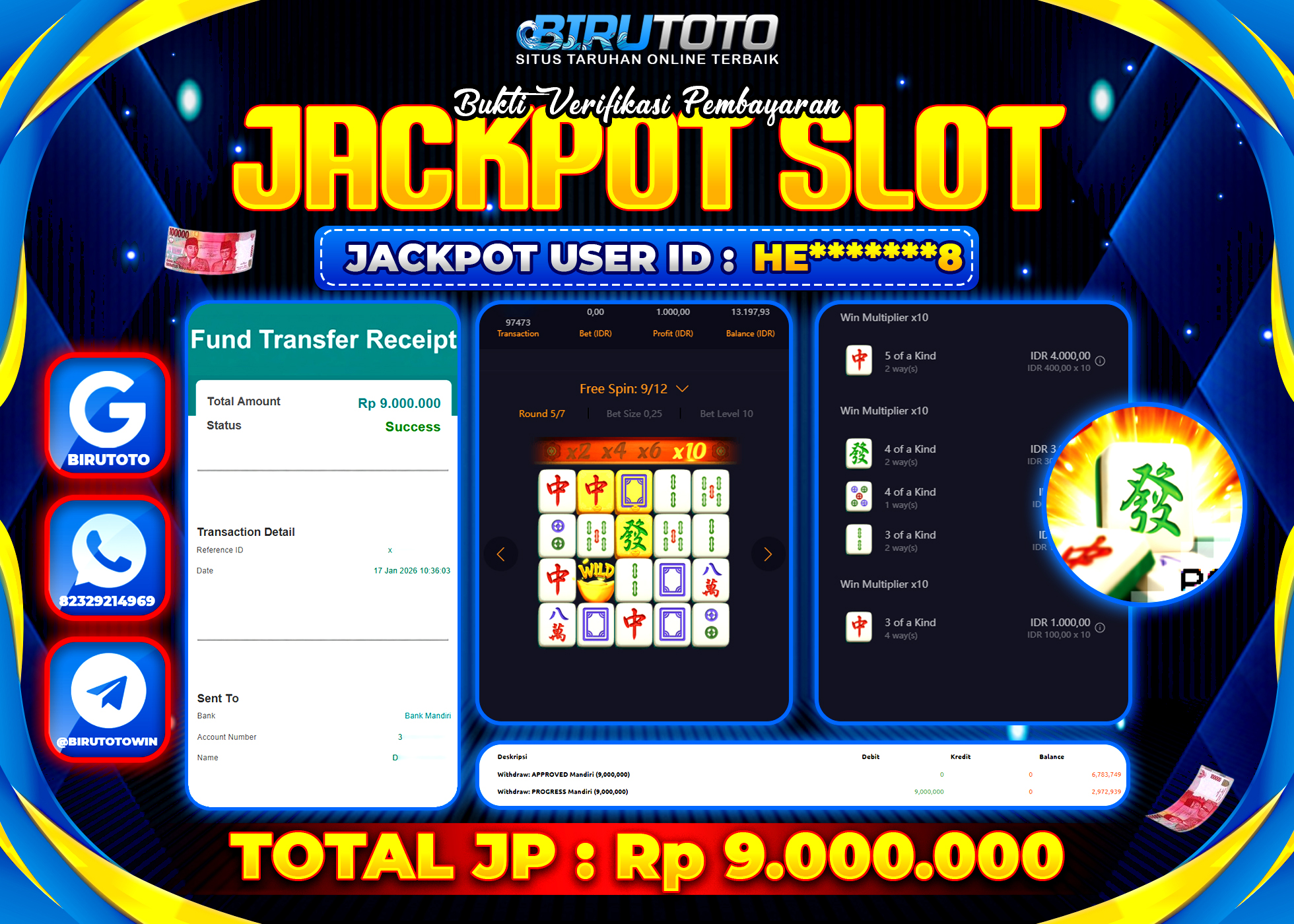 BIRUTOTO JACKPOT SLOT MAHJONG WAYS Rp.9.000.000 LUNAS