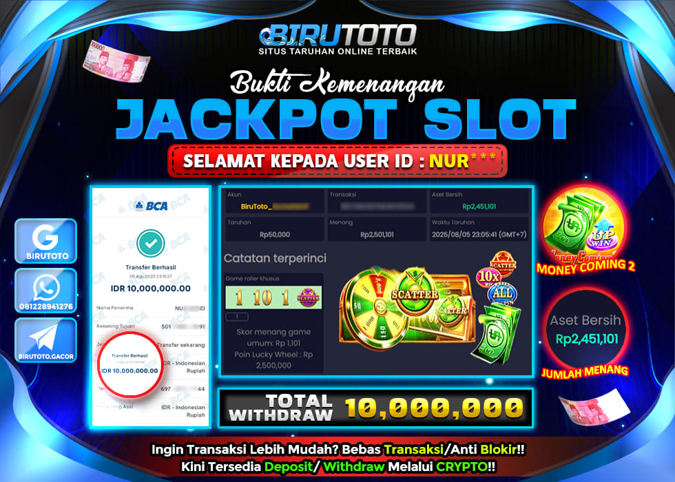 BIRUTOTO JACKPOT SLOT MONEY COMING 2 Rp.10.000.000 LUNAS