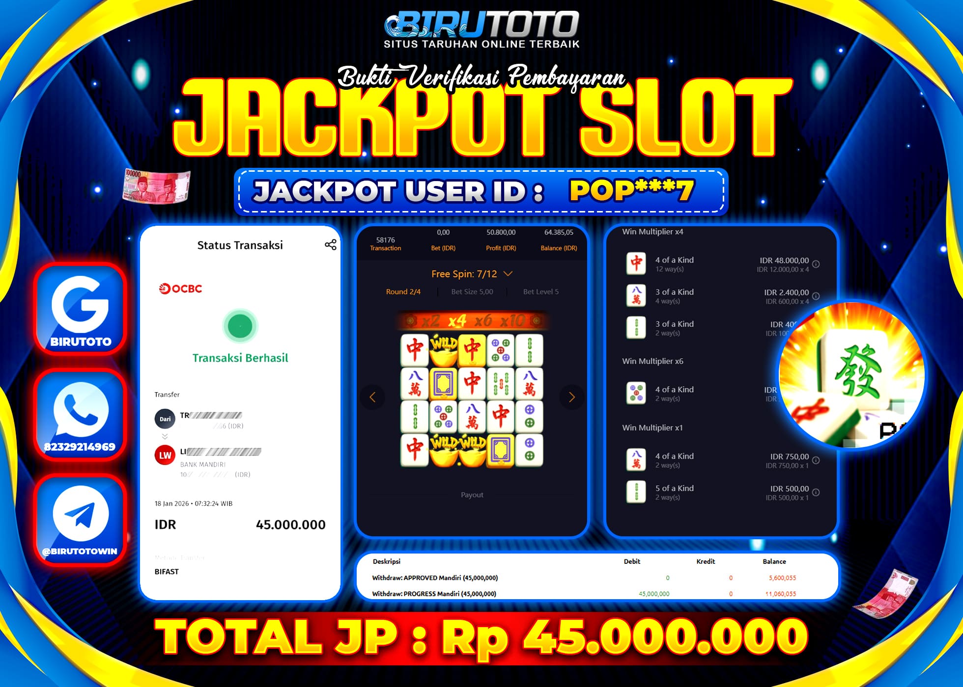 BIRUTOTO JACKPOT SLOT MAHJONG WAYS Rp.45.000.000 LUNAS