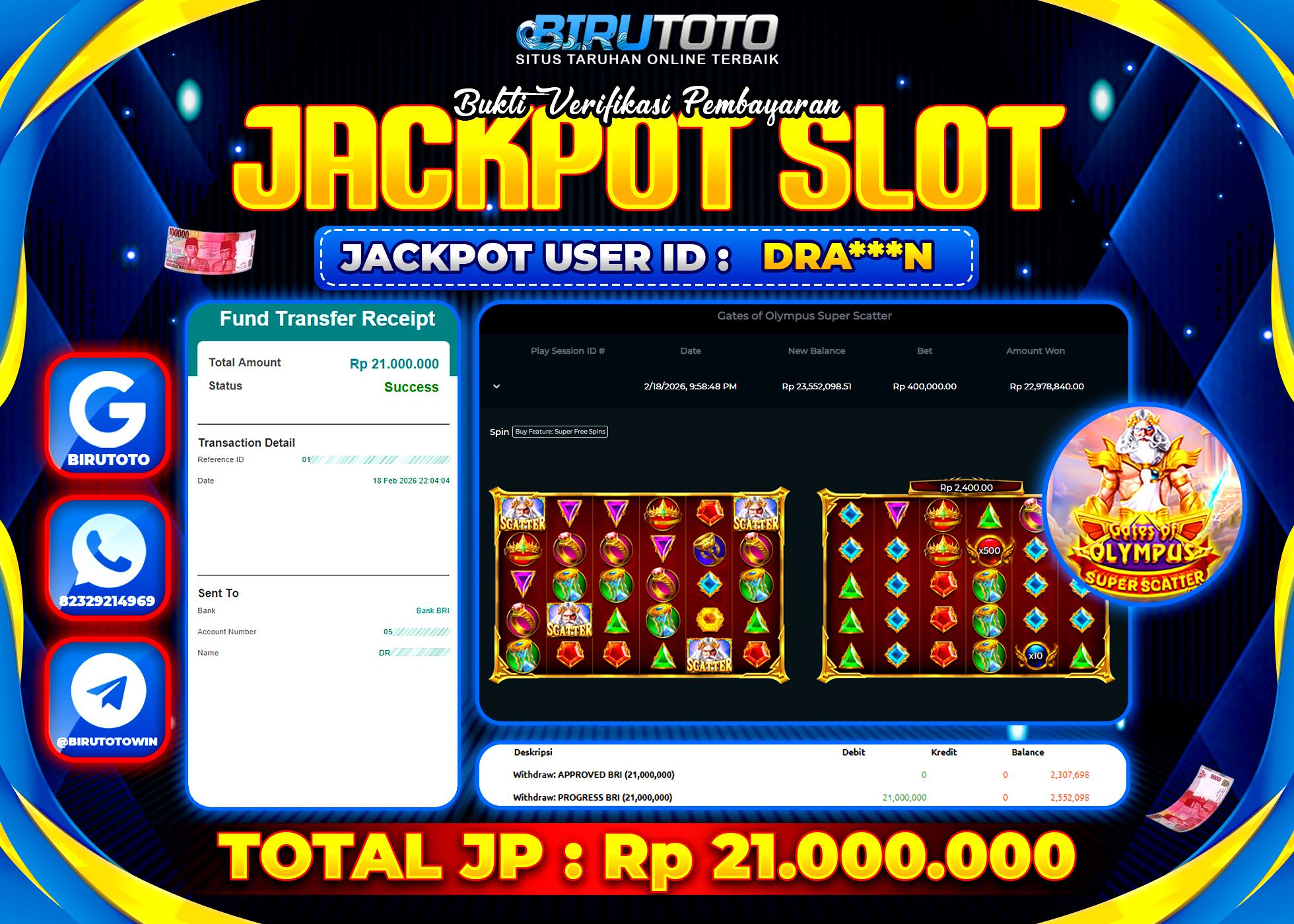 BIRUTOTO JACKPOT SLOT GATES OF OLYMPUS SUPER SCATTER Rp.21.000.000 LUNAS