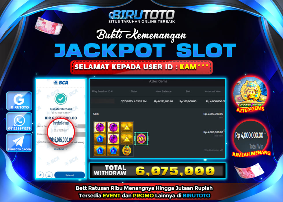 BIRUTOTO JACKPOT SLOT AZTEC GEMS Rp.6.075.000 LUNAS