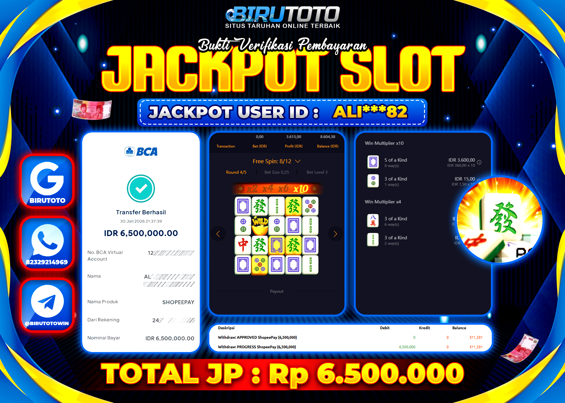 BIRUTOTO JACKPOT SLOT MAHJONG WAYS Rp.6.500.000 LUNAS