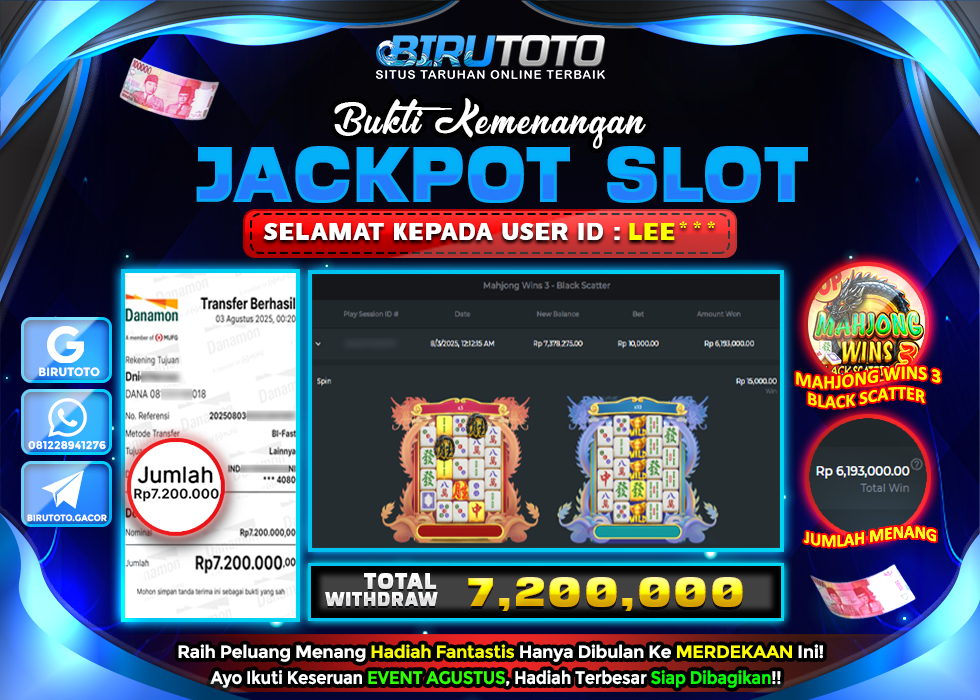 BIRUTOTO JACKPOT SLOT MAHJONG WINS 3 - BLACK SCATTER Rp.7.200.000 LUNAS