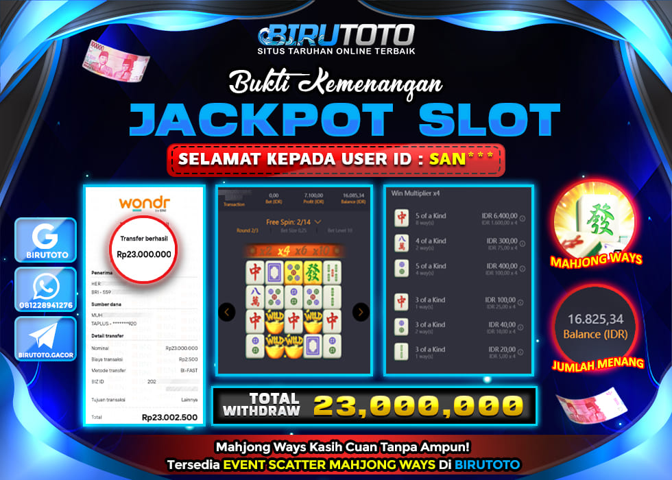 Ya cuma di BIRUTOTO, tempat paling aman dan terpercaya buat pecinta SLOT MAHJONG WAYS. Nikmati layanan premium, kemenangan fantastis, dan pembayaran tanpa drama.