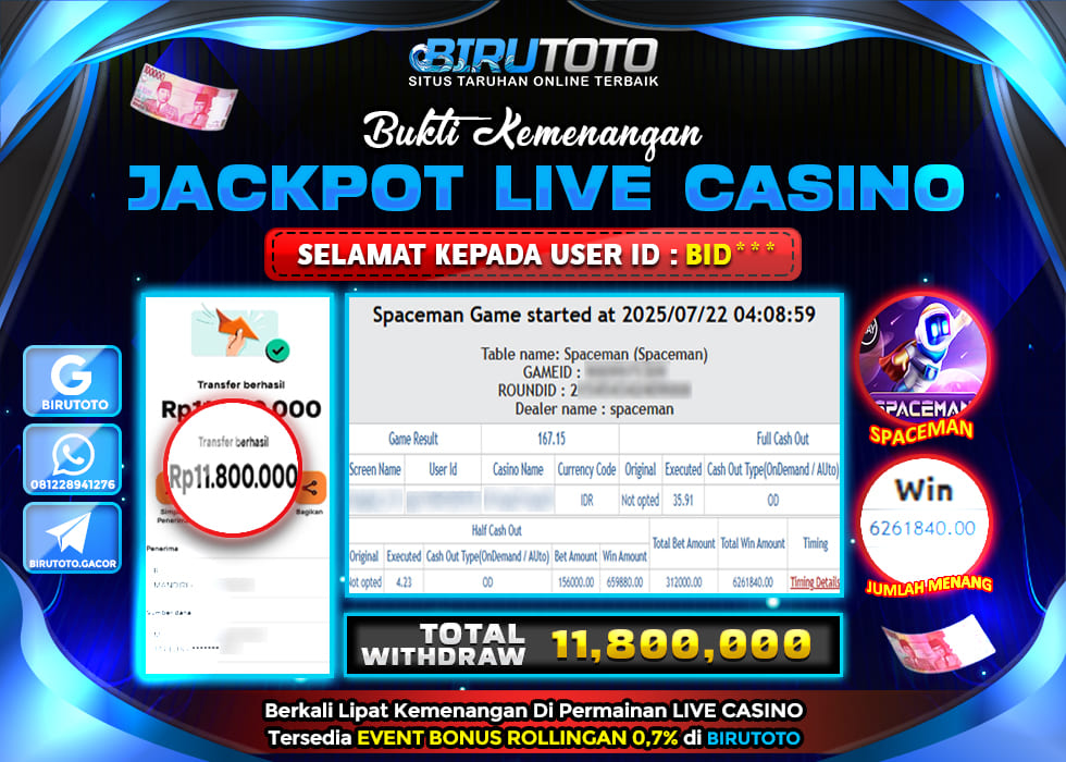 BIRUTOTO JACKPOT LIVE CASINO SPACEMAN Rp.11.800.000 LUNAS