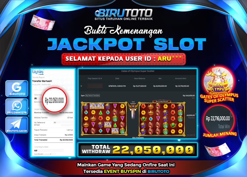 BIRUTOTO JACKPOT SLOT GATES OF OLYMPUS SUPER SCATTER Rp.22.050.000 LUNAS