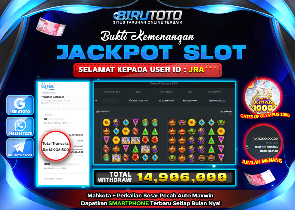 BIRUTOTO JACKPOT SLOT GATES OF OLYMPUS 1000 Rp.14.906.000 LUNAS