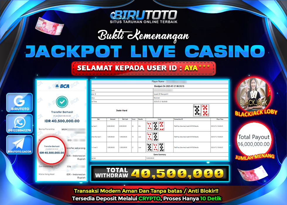 BIRUTOTO JACKPOT LIVE CASINO BLACKJACK LOBBY Rp.40.500.000 LUNAS