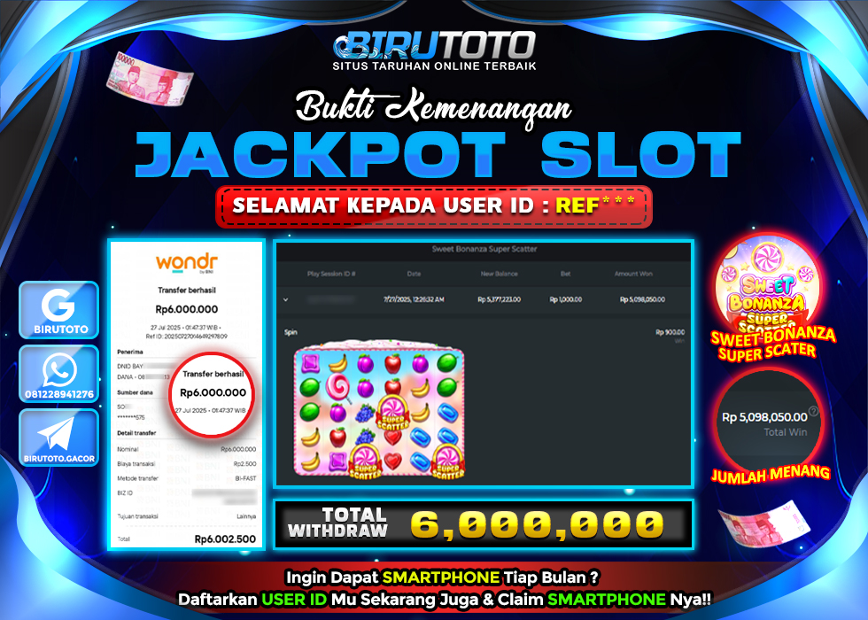 BIRUTOTO JACKPOT SLOT SWEET BONANZA SUPER SCATTER Rp.6.000.000 LUNAS