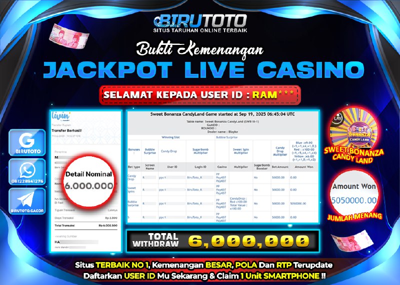 BIRUTOTO JACKPOT LIVE CASINO SWEET BONANZA CANDY LAND Rp.6.000.000 LUNAS