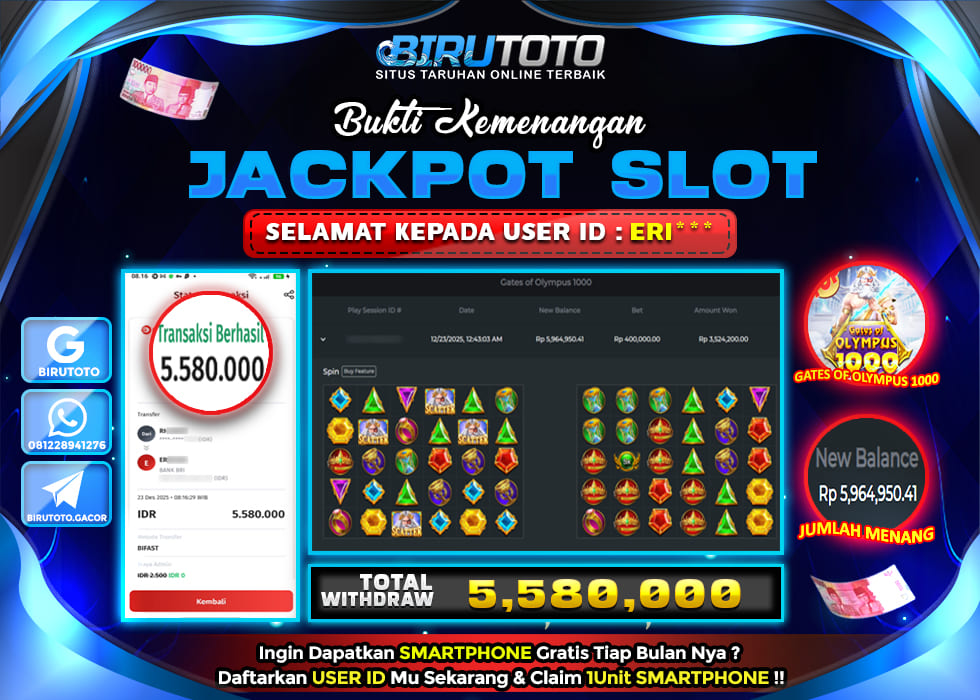 BIRUTOTO JACKPOT SLOT GATES OF OLYMPUS 1000 Rp.5.580.000 LUNAS