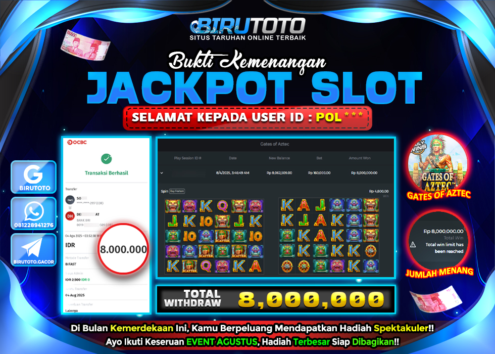 Selamat Kepada Member BIRUTOTO PO**** Telah Jackpot Di SLOT GATES OF AZTEC