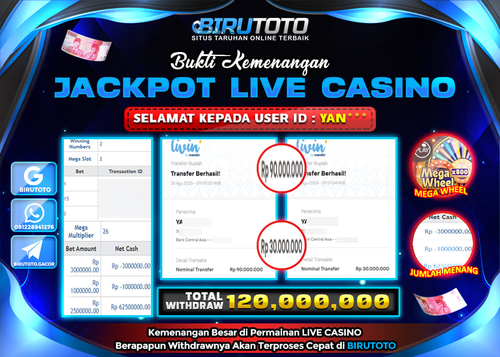BIRUTOTO JACKPOT LIVE CASINO MEGA WHEEL Rp.120.000.000 LUNAS