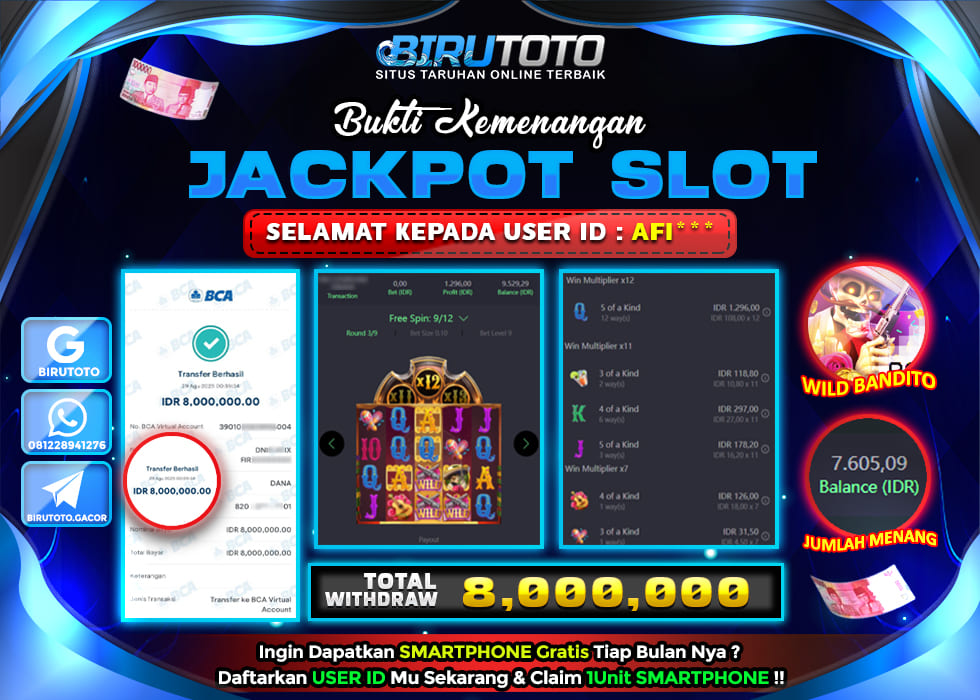 Selamat Kepada Member BIRUTOTO AF**** Telah Jackpot Di SLOT WILD BANDITO
