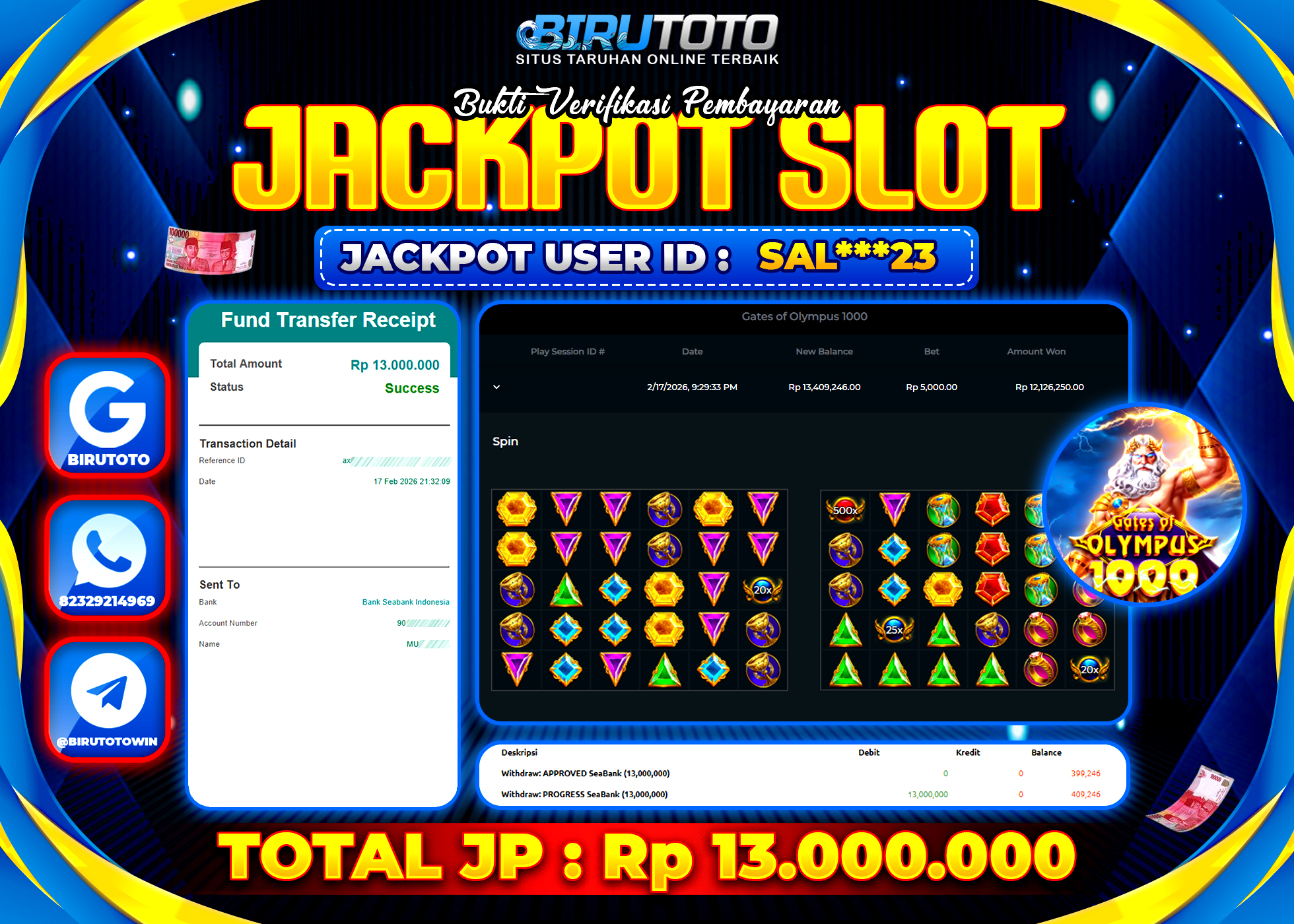 BIRUTOTO JACKPOT SLOT GATES OF OLYMPUS 1000 Rp.13.000.000 LUNAS