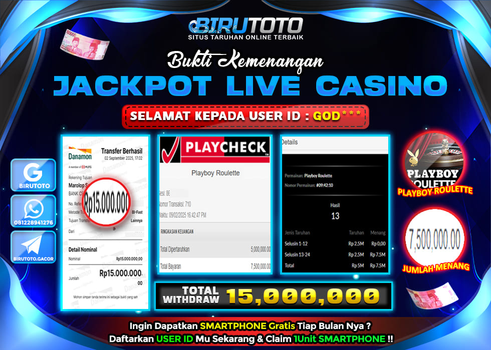 BIRUTOTO JACKPOT LIVE CASINO PLAYBOY ROULETTE Rp.15.000.000 LUNAS