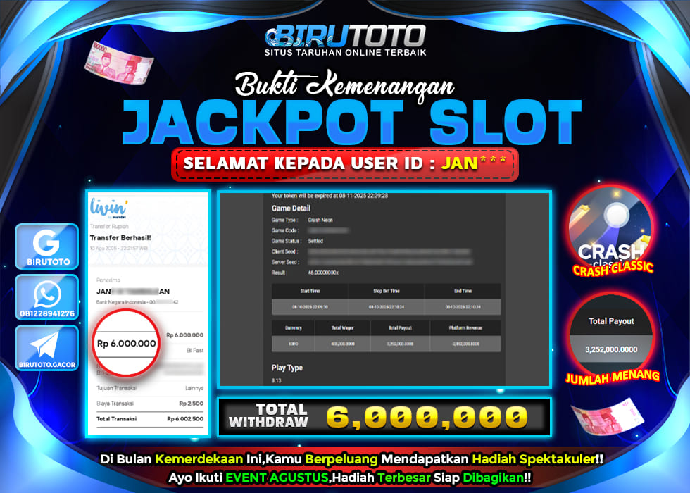 BIRUTOTO JACKPOT SLOT CRASH CLASSIC Rp.6.000.000 LUNAS