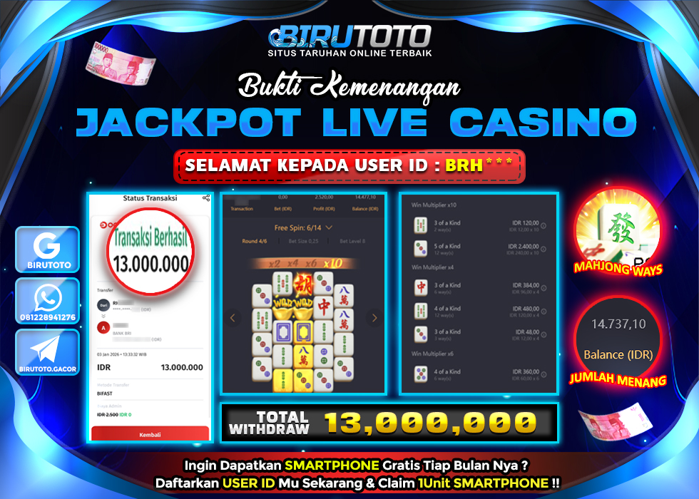 BIRUTOTO JACKPOT SLOT MAHJONG WAYS Rp.13.000.000 LUNAS